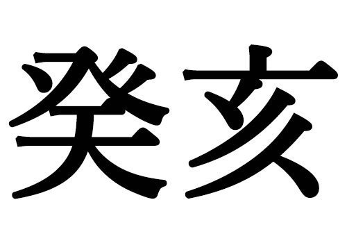 癸亥は【みずのとい】または「きがい」と読みます。60ある干支のラストを飾っていて、西暦を60で割り算して3の余りが出る年を癸亥年と定めています。