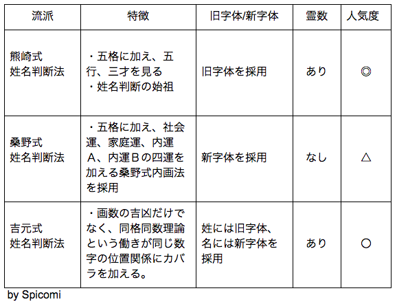 現在、最もポピュラーで主流な流派は、やはり姓名判断の始祖である、熊崎健翁が提唱した熊崎式ですが、それも占者の経験により様々にアレンジされているのが実情で、そういう意味では、流派は今現在も増え続けているといって良いでしょう。