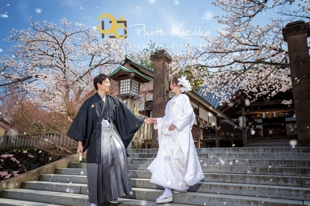 当店ではスタジオフォトとロケーションフォトのどちらも行っておりまして、例えば和装は外で洋装はスタジオ、といった組み合わせもできますし、スタジオのみ、ロケーション撮影のみ、という形もお選びいただけます。
