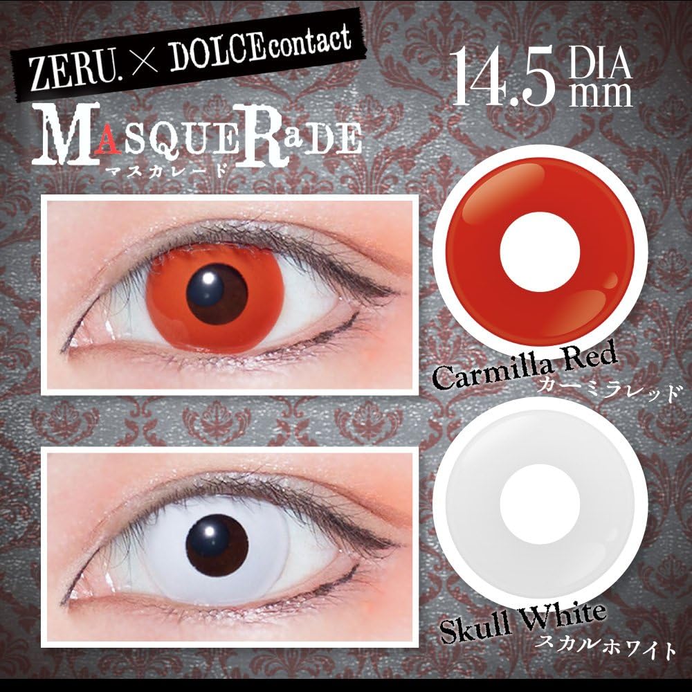 株式会社インターピアで販売されているゾンビ風カラコンで、カーミラレッドという色味が人気となっています。非イオン性レンズを採用しているので汚れにくく目に優しいコンタクトとなっています。また、サンドイッチ製法を採用しているので装着感もかなり自然。
